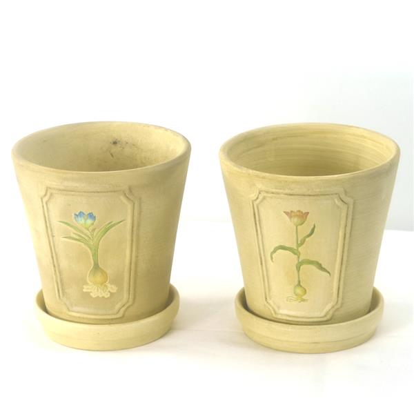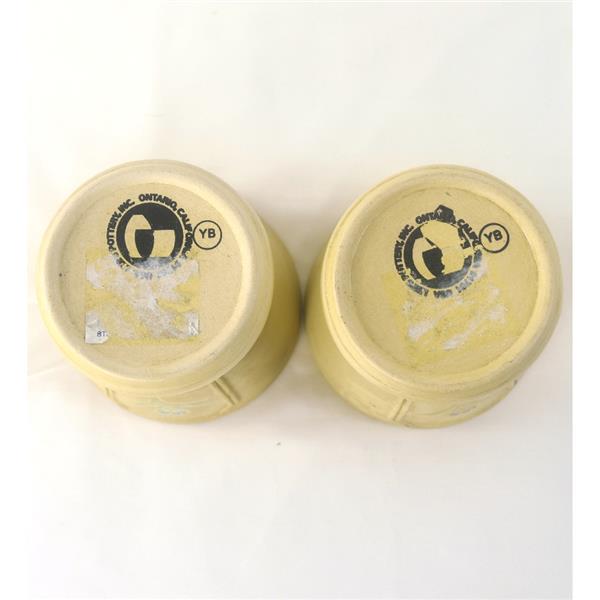Two (2) Lee's Pottery Inc Iron Yellow Ceramic Flower Pots, preowned.