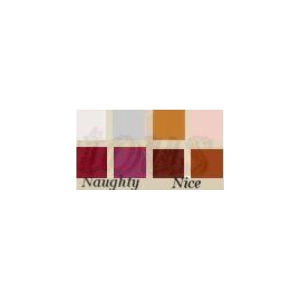Naughty: Shimmery Eye shadow shades of white and silver with luscious lip glosses in red and pink.