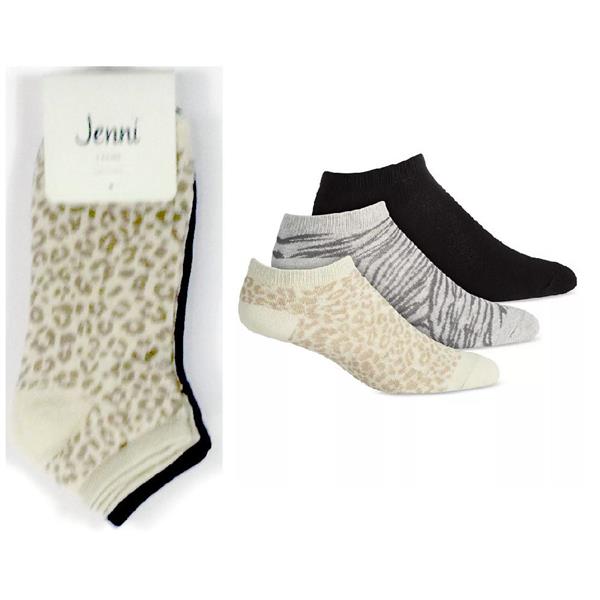 Three (3) pair of Womans Jenni Low-Cut Socks in Black Assorted, Sock Size 9-11, Shoe Size: 5-9, New with tags, no retail packaging. These low-cut cotton blend socks have a mix of chic print and solid with a comfortable fit and feel. Retail $16.99