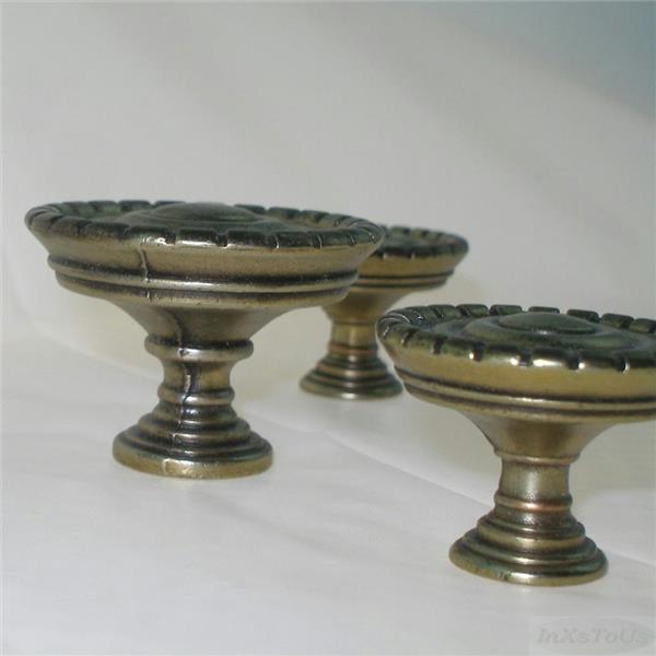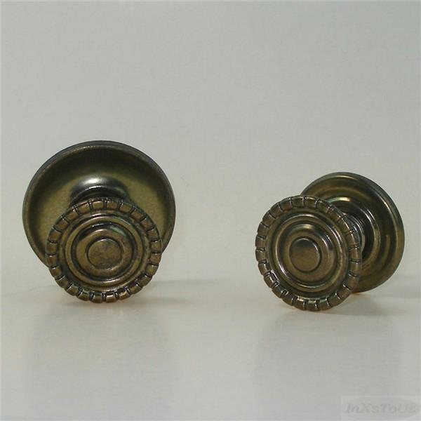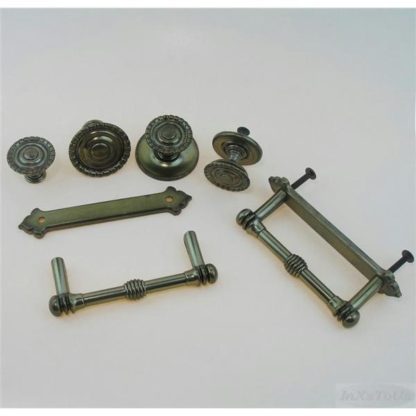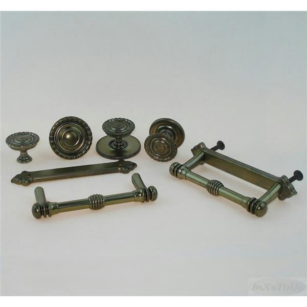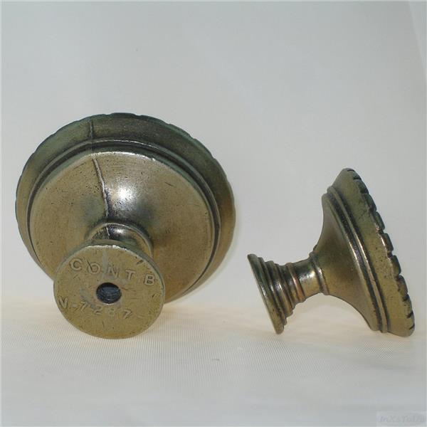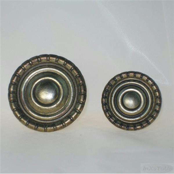 Custom Cast Accent Pulls Handles & Backplates from the Thomasville Soliloque Collection for Cabinets and Furniture. Choose only what you need and what works for you. The knobs have circular accents and notched edges, the handles have similar circular accents. All have a light gold finish. These items are discontinued and were used for the Thomasville Furniture Soliloque Collection. Pricing is for 1 one of the configured options stated below