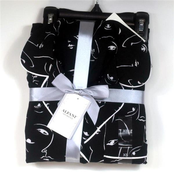 Alfani Women's 2 piece Soft Pajama Top and Shorts Set in Face Outline, New with tags, No retail packaging. Choose Size from the drop down box above. Sleep comfortably in this soft 2 piece pajama set. This pajama set features a button-front top with notch collar, a front trimmed chest pocket and pull-on shorts with comfort waistband. Retail $64.50