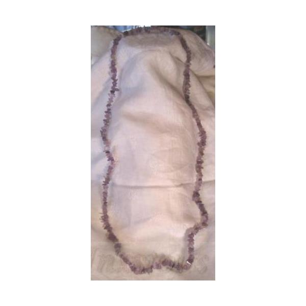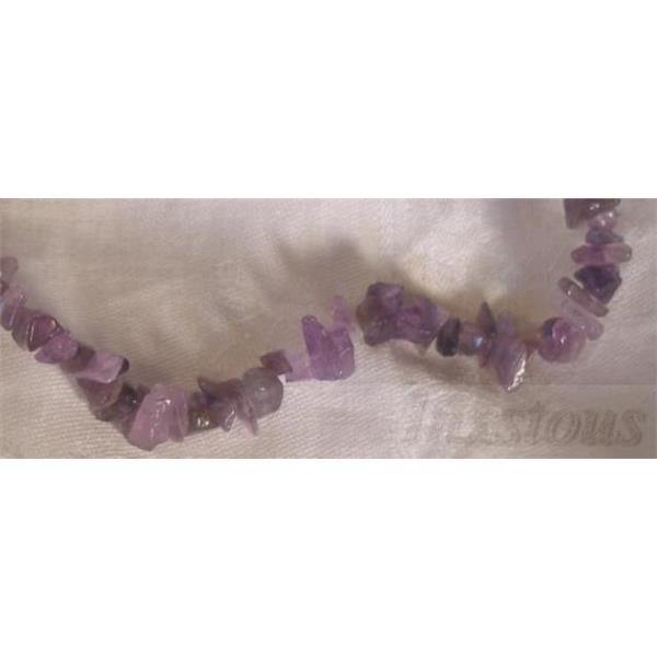 Amethyst Chip Endless Strand Necklace. The necklace is 34" long with beautiful multi shades of irregular shaped with smooth surface stones. Wear as a single or double strand. Better yet, take apart to use the stones for other projects. Amethyst is believed to have meditative and calming properties.