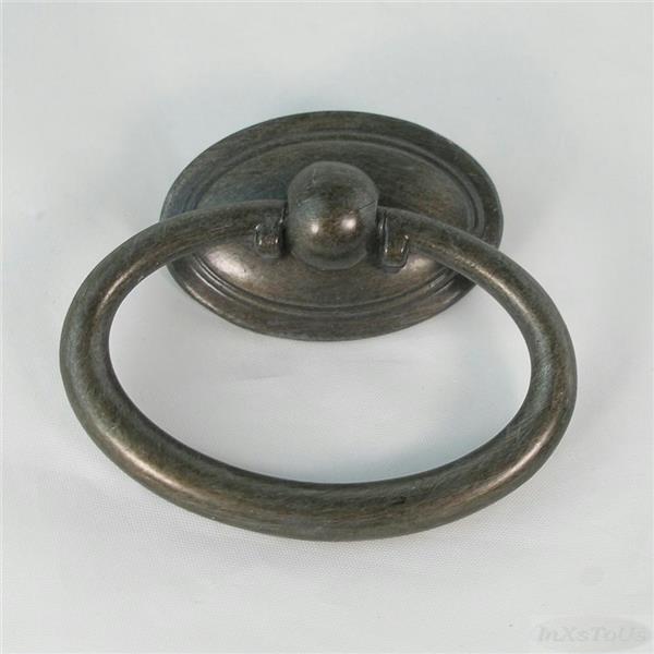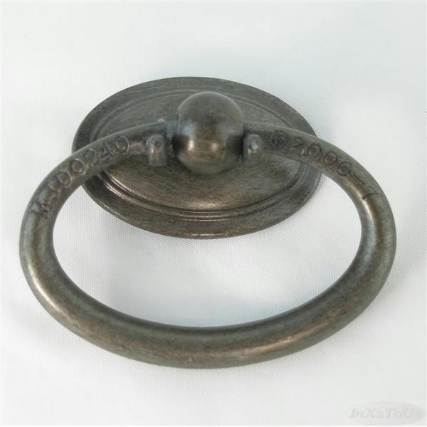 Set of 5 Beautiful Cabinet Oval Ring Pulls and backplate in bronze rubbed finish for furniture such as dressers cabinets and more. This pull has a smooth rounded shape. The oval backplate has a border. Marked MJD020240 on ring and backplate