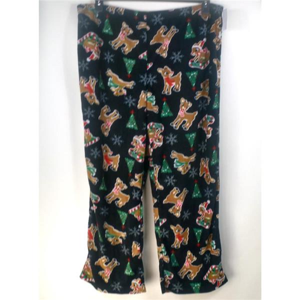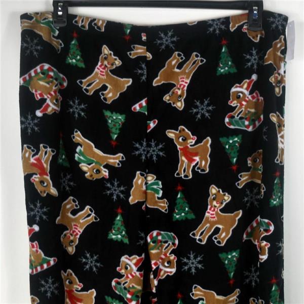 - Fleece feel full length pants with elastic waist in black with allover Rudolph print