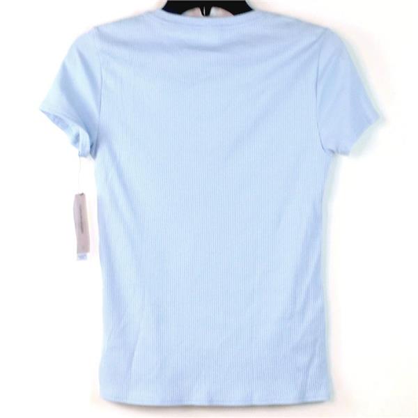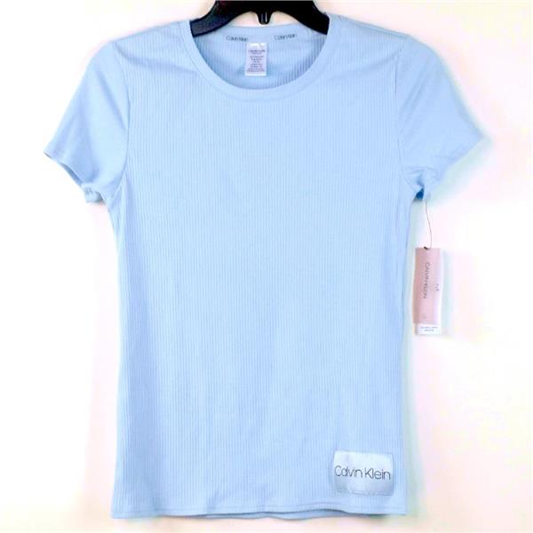 Calvin Klein Ribbed Logo Patch Crewneck Lounge T-Shirt in Baby Blue, Size XS, QS6583, New with tags, no retail packaging. Relax and sleep in comfort in this ribbed cotton modal with a bit of stretch, soft Lounge T-shirt. It has short sleeves, crew neckline and woven logo patch. Retail $40.