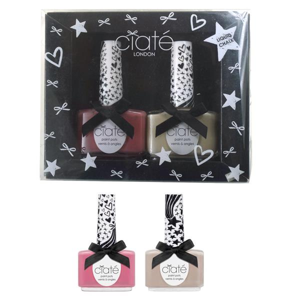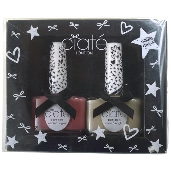 Ciate London Chalk Collection Duo Doodle Dance. This liquid Chalk polish duo is all you need for pastel nail perfection. Slick a coat to fingertips for an understated, fashionable finish. Doodle Dance features two full size chalk shades (0.46 oz) that are part of Ciate’s spring-inspired Liquid Chalk Collection. The nail polish set includes Cheek to Cheek, a pink pastel shade, and Confess, a classic nude shade. These quick-drying nail polishes whether used alone or together provide your nails with a cheerful, classy look.