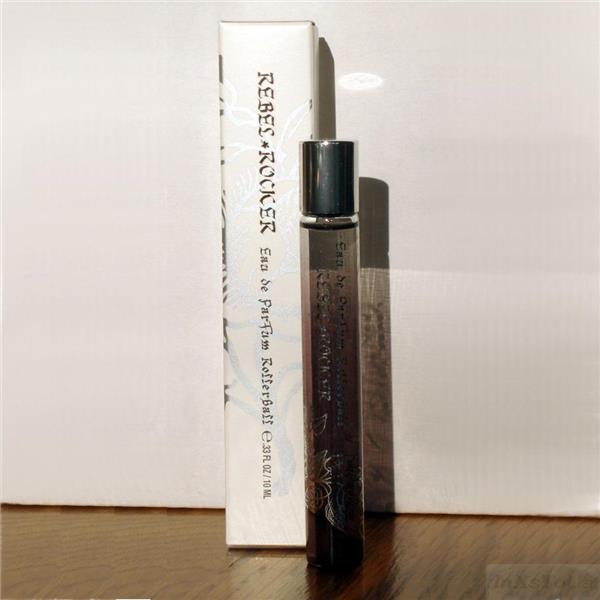 Claires Rebel Rocker Eau de Parfum Rollerball 0.33oz. Racy Rebel Rocker combines florals and sultry spices. Is housed in a clear glass 4-1/4" tube decorated in silver with silver screw on cap.