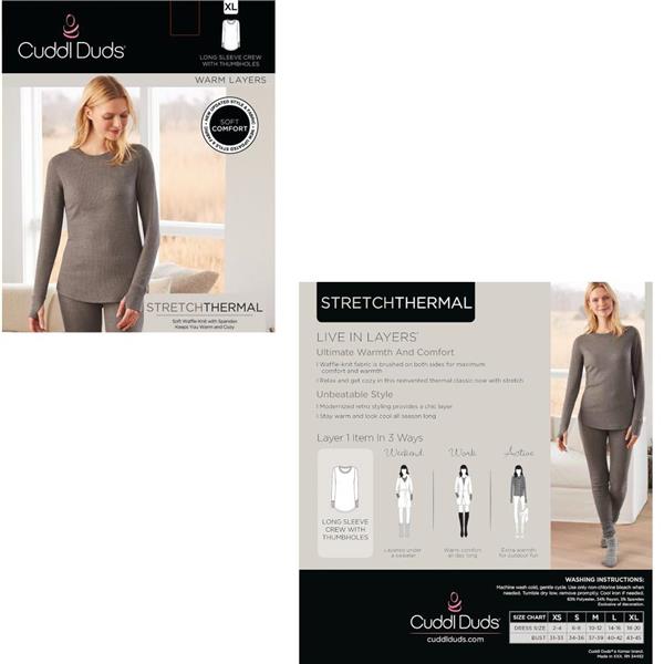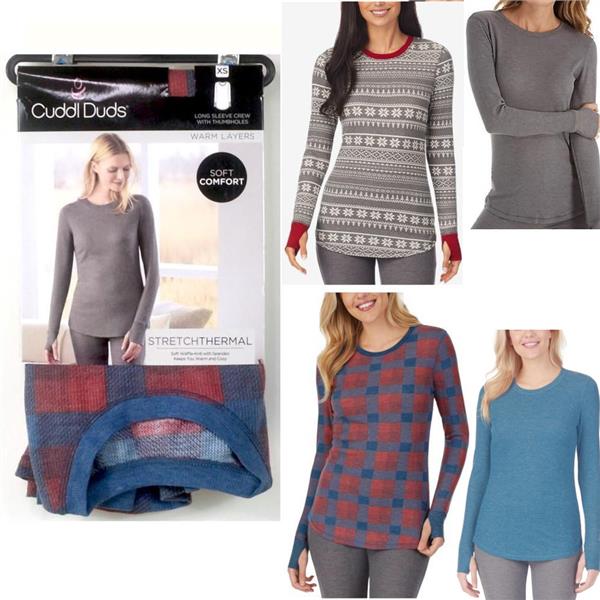 Cuddl Duds Women's Soft Comfort Stretch Thermal Crew Neck Top with Thumbholes, new with tags, no retail packaging. Stay warm and comfortable in this lightweight soft waffle-knit Top. Retail $32.