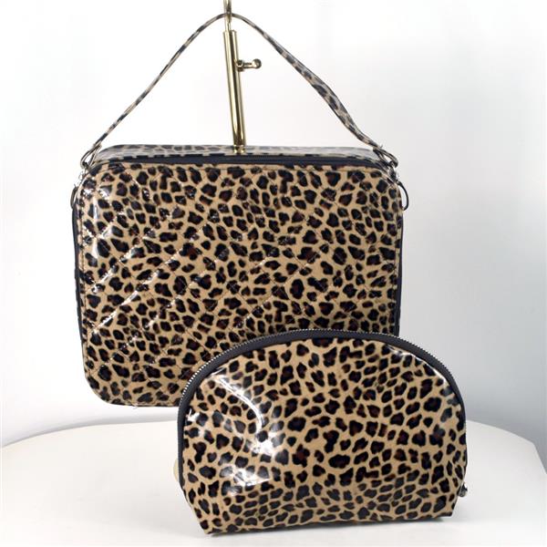 Premier couture fur designer Dennis Basso Animal Print Cosmetic bag and case, new, no retail packaging. Handy for home and travel, this 2 piece set has a glossy wipe clear animal print exterior and lined interior. Designed to fit your cosmetic storage needs and more.