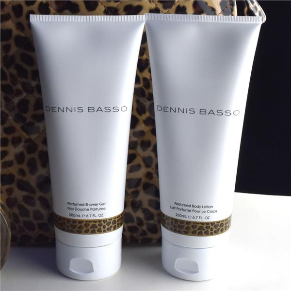 Dennis Basso Sophisticated Shower Gel & Lotion Set, Full Size 6.7 oz ea, No Box. Dennis Basso 6.7 oz Shower Gel lathers nicely and gently cleanses with its lovely lightly scented formula. His body lotion softens skin, leaves skin feeling soft and lightly scented.