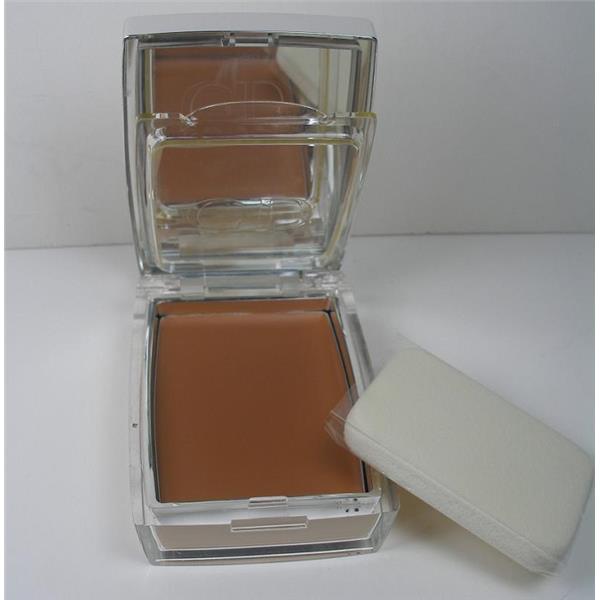 Diorskin Nude Creme Gel Compact combines a cream gel texture and the satiny perfection of a powder. It has a microscopic network of soft waxes and mineral powders. Upon application, the gel melts into the skin and turns into an invisible powder that instantly and effortlessly glides across the skin for an ultra-natural satin finish and provides light to medium coverage. A new technological process allows the texture to retain Active Mineralized Water droplets. Skin becomes velvety, radiant and translucent. Included is a double-sided applicator that makes application easy: the velvet side allows for gentle application and a luminous finish, while the sponge side blends and flawlessly evens the skin tone. Housed in a clear case with silver pop-up lid with mirror.