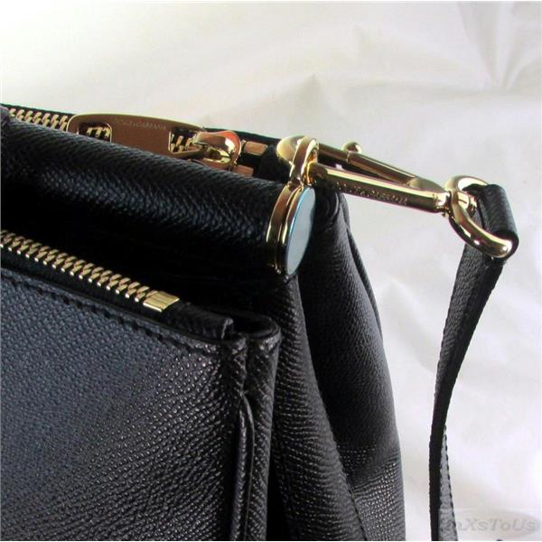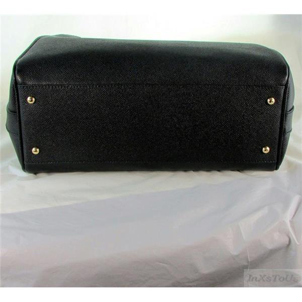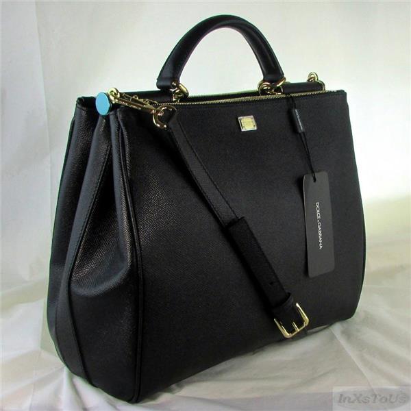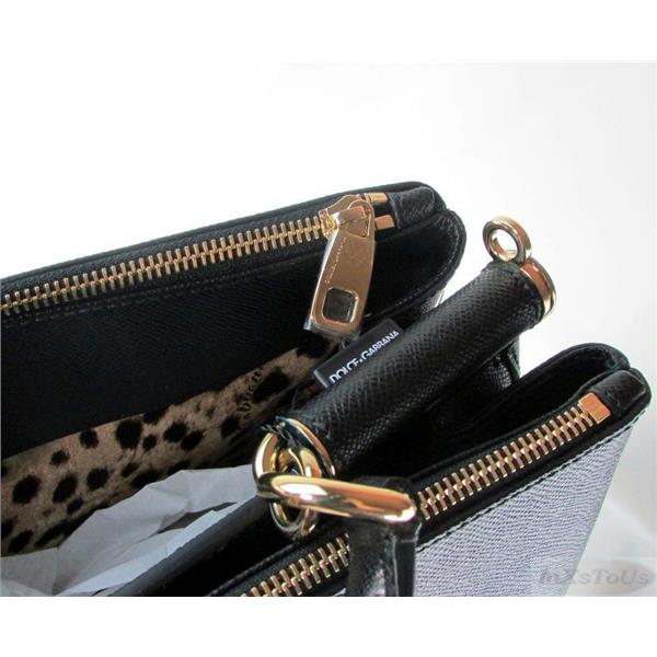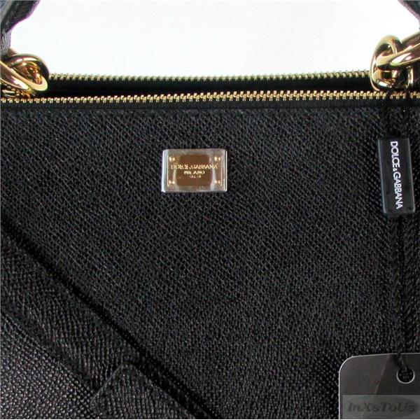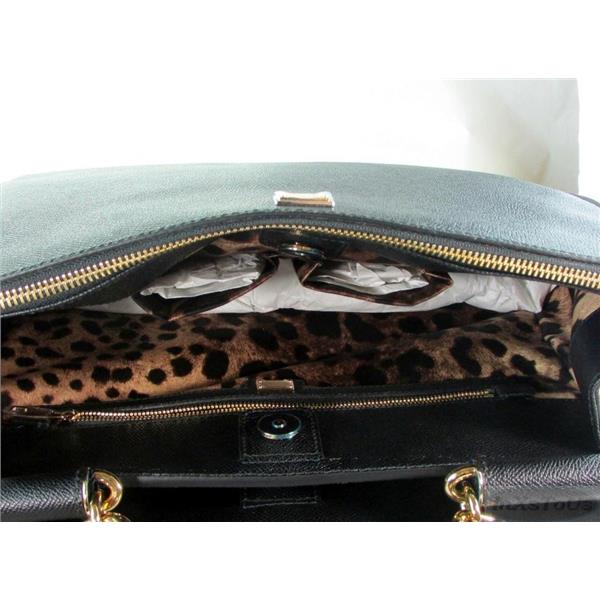 Dolce & Gabbana Shopping Vitello Dauphine leather tote in Nero (Black). The Dauphine Tote is 13" W x 11.5" H x 6" D, made in Italy, and constructed of Pebbled calfskin with a designer-stamped leopard-print twill interior lining. It has a top handle, detachable shoulder strap, logo embossed metal gold-colored zippers and feet. There are 2 side zipper compartments, 2 magnetic close compartments. Inside one of the open compartments is one zip-close pocket and 2 open pockets. Decorative metal pendant with embossed logo on front. Dust Bag included as well as authenticity cards. Retail was $1,795.