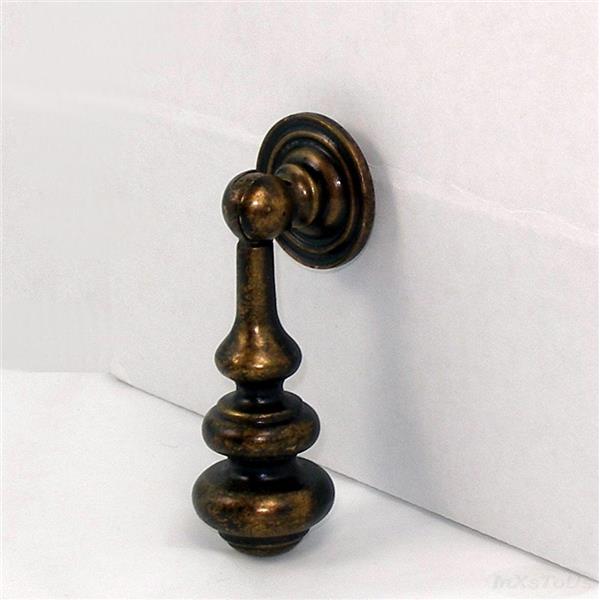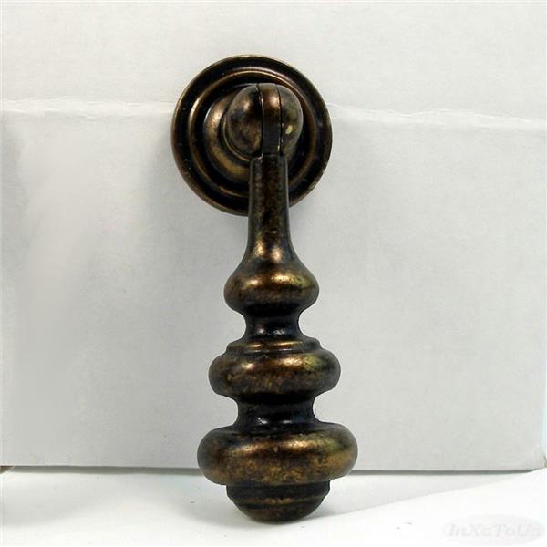 Drop Pull in Brushed Antique Copper for furniture such as dressers cabinets and more. This weighty drop pull makes a handsome statement in size and style with its graduated round accents and antique brushed antique copper finish.
