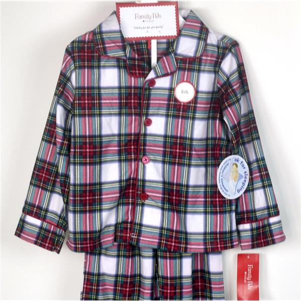 Family PJ Toddler Brushed Jersey Pajama Set in Plaid, Size 2T-3T, New with tags, no retail packaging. Choose pattern from the drop down box above. Keep warm and comfortable in this brushed jersey pajama set. They feature a button-front collared top with satin trim and pull-on pants.
