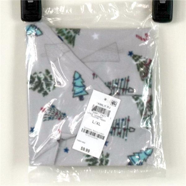 Family PJs Pet Bandana in Festive Trees, Size L/XL new with tags, no retail packaging. Dress your pet in comfy, cute style with this fleece bandana in gray with an allover festive trees, star, and candy cane print.