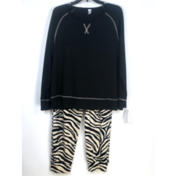 FLORA NIKROOZ Audrey Top & Printed Velour Jogger Pajama Set in Black, New with tag, no retail packaging. Choose size from the drop down box above. This 2 piece set has a soft long sleeve top with stitch accents and velour jogger pants in an animal print. Retail $72.00
