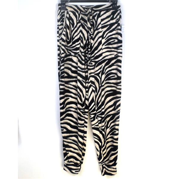 - Animal print velour Jogger style pull on pants with comfort waistband and drawstring, front pockets, and cuff hem