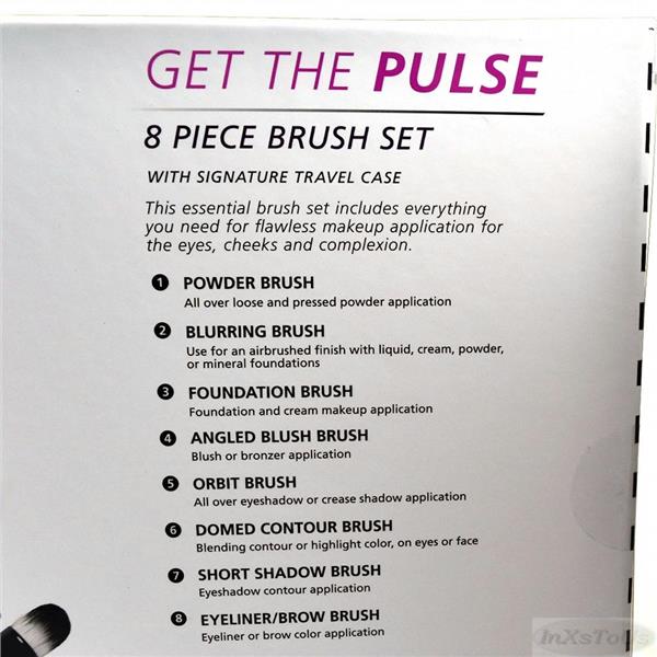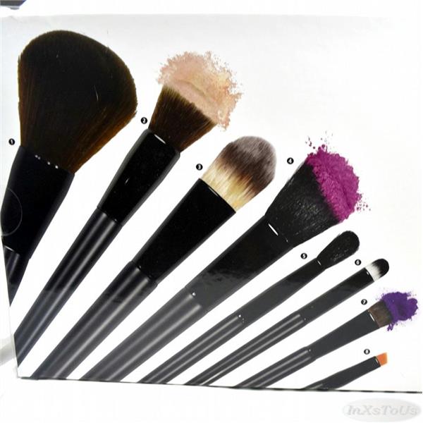 A set of 8 full size (total length varies from 6-1/8"l to 7-1/2"l) quality brushes. The bristles are dense, soft, yet firm making loading the brush and applying product easily for flawless application. Includes a zip close flip open case making these travel friendly. A great price for a quality product. Retail $39.50.