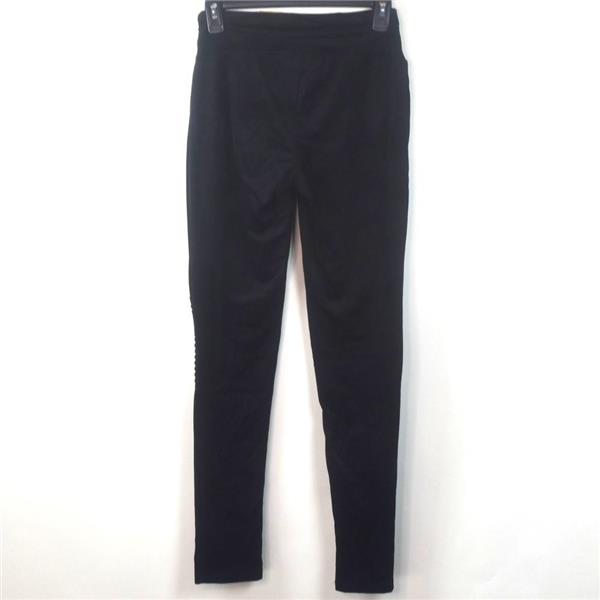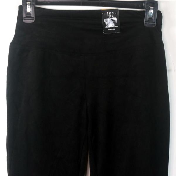 INC International Concepts Women's Faux Suede Pintuck Moto Leggings in Black, New with tags or reticket tags, no retail packaging. The INC Moto Legging is a soft faux suede with a bit of stretch for movement. They have a street-chic moto-inspired pintuck stitching at the knees and wide contour easy on the waist waistband. Retail $39.99.