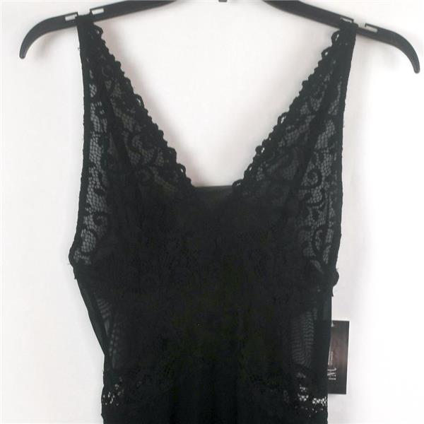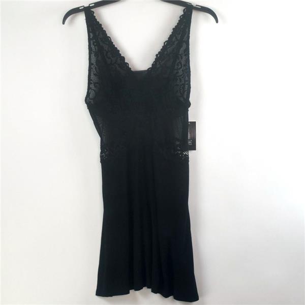 INC International Concepts Womens Lace and Mesh Bodice Soft Knit Chemise in Deep Black, New with tag, no retail packaging. Create a feminine, romantic, nighttime look with this Chemise. It has a flowy knit skirt with lace and mesh bodice and lace trim accents. Retail $39