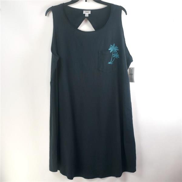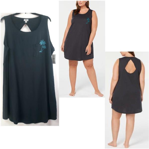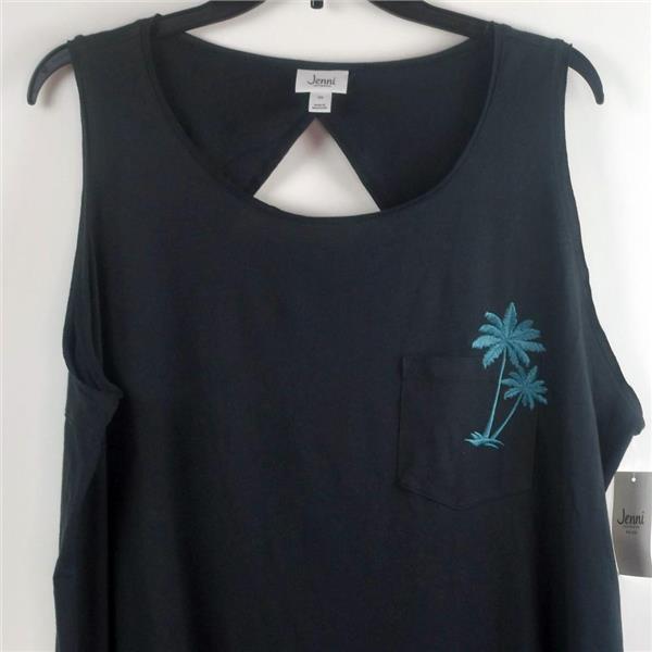 Jenni by Jennifer Moore Plus Size Graphic Keyhole Sleepshirt in Emb Palm Tree, New with tags, no retail packaging. Choose size from the drop down box above. Enjoy your evenings in this playful style sleepshirt. This lightweight cotton-blend pullover Sleepshirt has a scoop neckline, rounded hemline with a pocket and embroidered plam trees in an aqua/blue on slate gray jersey knit fabric and oversized keyhole accent in back.