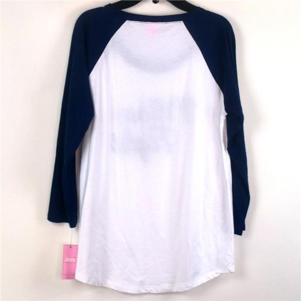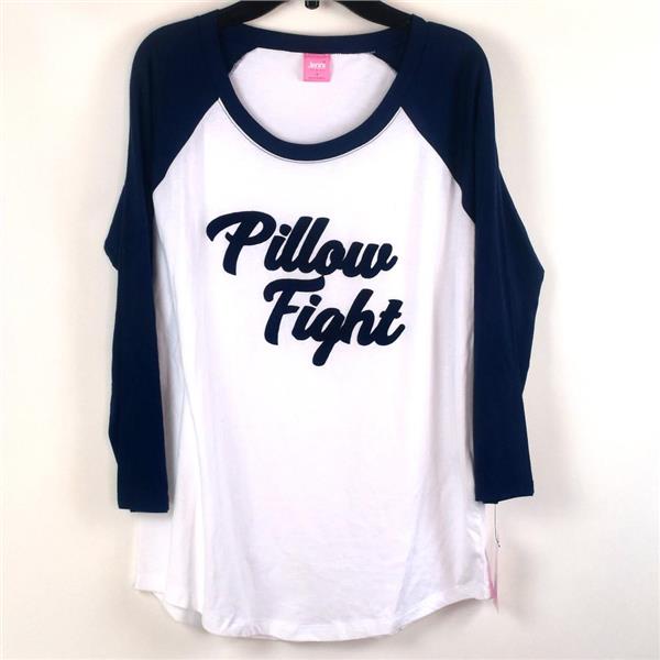 Jenni by Jennifer Moore Raglan Sleeve Pajama Top in Pillow Fight, New with tags, no retail packaging. Choose size from the drop down box above. This pajama top is Cotton Blend with contrast raglan sleeves and front graphic.