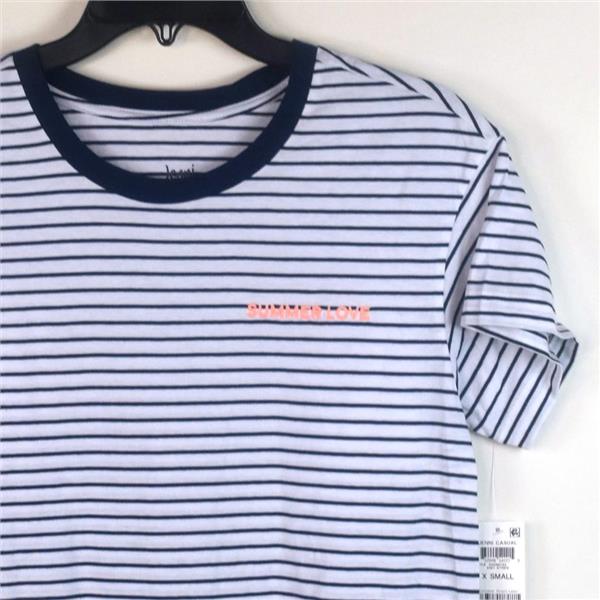 Jenni by Jennifer Moore Cotton Boyfriend Fit Pajama Top in Knit Stripe, Size Medium. New with tags, no retail packaging. Comfort is yours in this all cotton oversize boyfriend style pajama stripe. It has a longer length, relaxed fit, short sleeve T-Shirt style top in stripe print with embroidered graphic: "Summer Love". Retail $21.50.