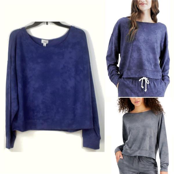 Jenni by Jennifer Moore On Repeat Super Soft Pajama Top, New with tags, no retail packaging. Choose size and color from the drop down box above. Lounge in comfort in this pajama top. This sweatshirt pull on style top has a soft feel, a rounded neckline with ribbed knit cuffs and hemline in an oh so subtle tie-dye print.