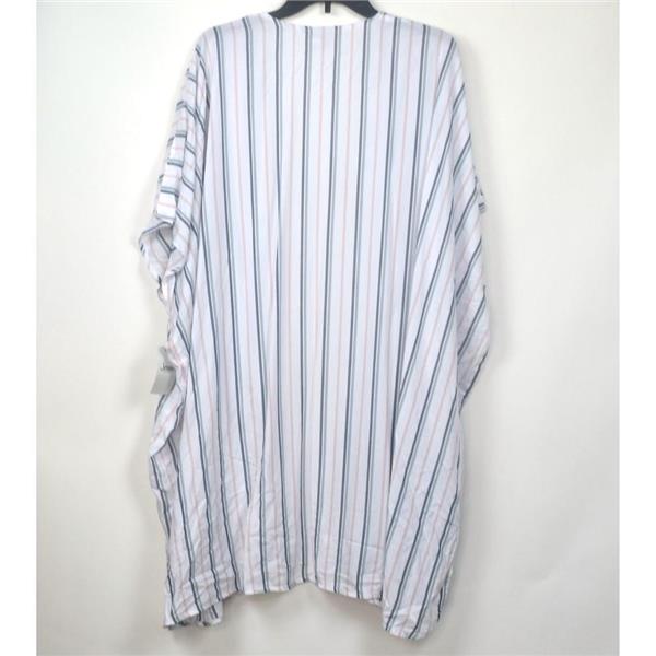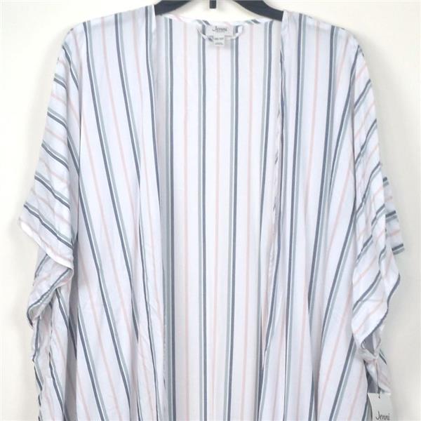 Jenni by Jennifer Moore Printed Lightweight Wrap Robe in Coastal Stripe, One Size, pajamas not included, New with tags, no retail packaging. Top your lounge wear with this cute and comfortable wrap robe. It is a relaxed fit, open front, draping style in a lightweight, woven fabric that is cool to the touch.