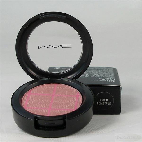 MAC Eye Shadow in the shade A Wish Come True from the limited edition A Tartan Tale Collection. These are a powder eyeshadow with Tartan striping imprinted on the top. The eye shadow is a finely milled, softly textured powders that provides beautiful sheer silky color. A Wish Come True is dirty mauve with bubblegum pink tartan striping. This applies as a dusty pink mauve frost.