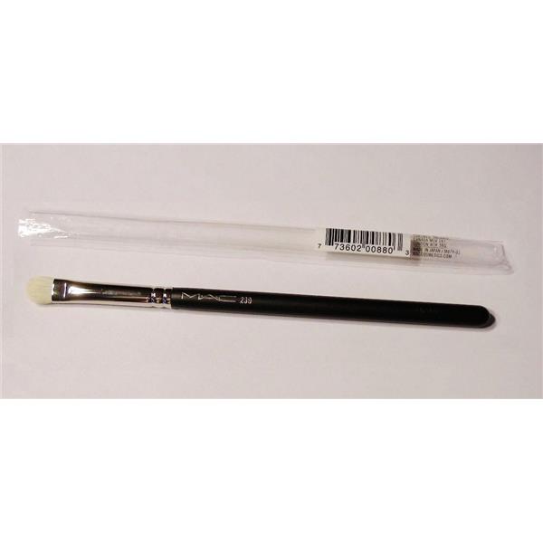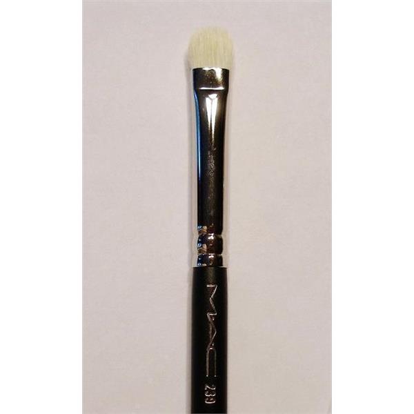 MAC Cosmetics 239 Shader Brush. This brush is soft and dense to shade blend or layer eye shadow or emollient-based products. It has a tapered, rounded edge with smooth, firm, fine fibres. This brush has a wood handle and nickel-plated brass ferrules. Approx. 6-5/8"l.