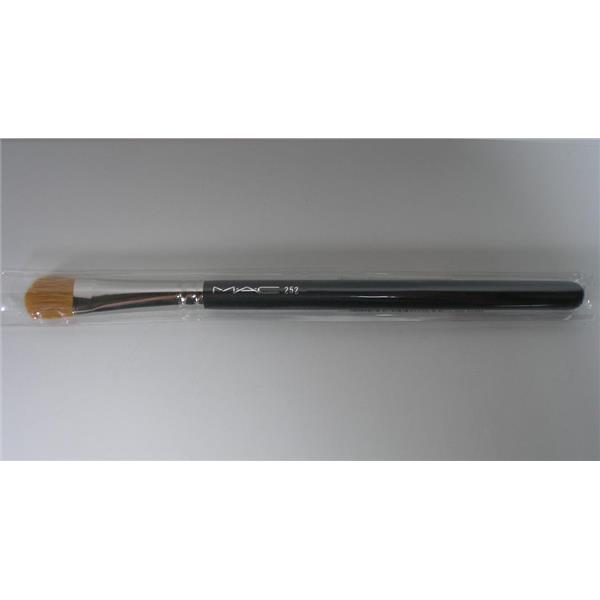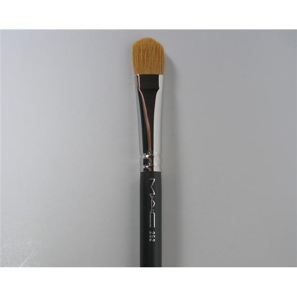 MAC Cosmetics 252 Large Shader Brush. This brush is soft and dense to shade blend or layer eye shadow or emollient-based products. It has soft, firm fibres arranged in a somewhat square shape. This brush has a wood handle and nickel-plated brass ferrules. Approx. 6-1/2"l. This brush is a bit wider and will cover a bit more area quicker than the 242 brush. Great for applying paints, colour base, powder eye shadow, concealer and more.