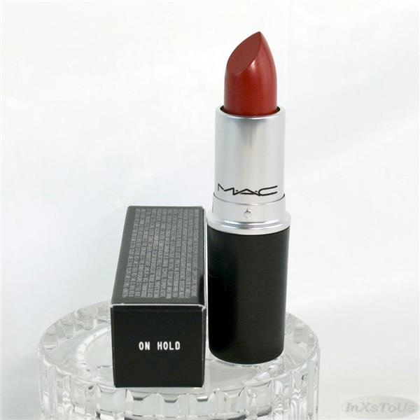 MAC Cremesheen lipstick in On Hold. Cremesheen lipstick is color plus texture for the lips. This creme-based lipstick imparts bright, full color with a gloss-like shine. On Hold is an midtone yellow raspberry shade.