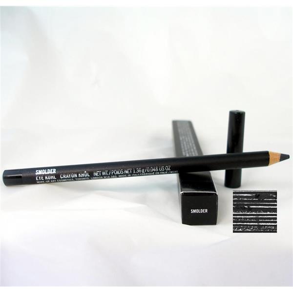 MAC Eye Kohl Pencil (.048oz) in the shade Smolder. Eye Kohl Pencils are long wearing, ultimate soft-on liners that line and define eyes with rich color and a silky-smooth, matte/pearl finish. Perfect for lining the inner eye rim, smudged on the eye line for a smoky look, or applied over the entire eyelid. Ophthalmologist tested. Smolder is a smooth rich intense black shade.