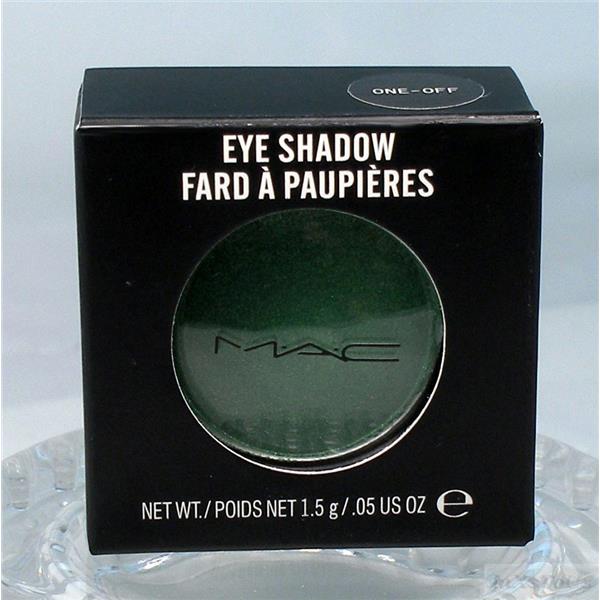 MAC Starflash Eye Shadow in One-Off. Starflash eye shadows are well pigmented, have a velvety texture, apply smoothly, blend easily, and have a beautiful shimmer. One-Off is a Green with Silver shade.