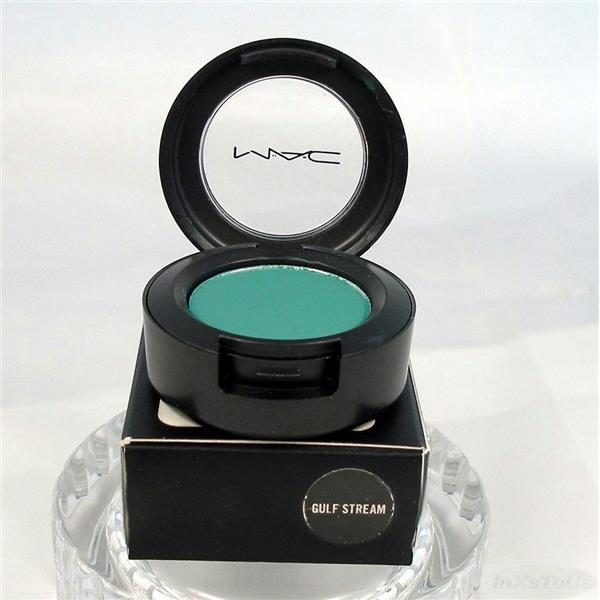 MAC Frost Eye Shadow in the shade Gulf Stream. Designed by and for professionals, the formula imparts an even application of colour, blends well, stays put all day and remains consistent and comfortable. MAC frost powder eye shadows contain frost particles in a formula which performs with ease and consistency. They are long lasting, fade-resistant and made with high quality pigment. Single packaged so you only buy the colors you want. Gulf Stream is a beautiful blue/green (Frost) shade.