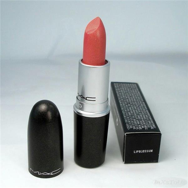 MAC Lustre lipstick in the shade Lipblossom. Lustre Lipstick is a formula which provides high color demi-sheer with a wet-look finish making lips look moist, soft and smooth. Lipblossom is a shimmering pink shade.