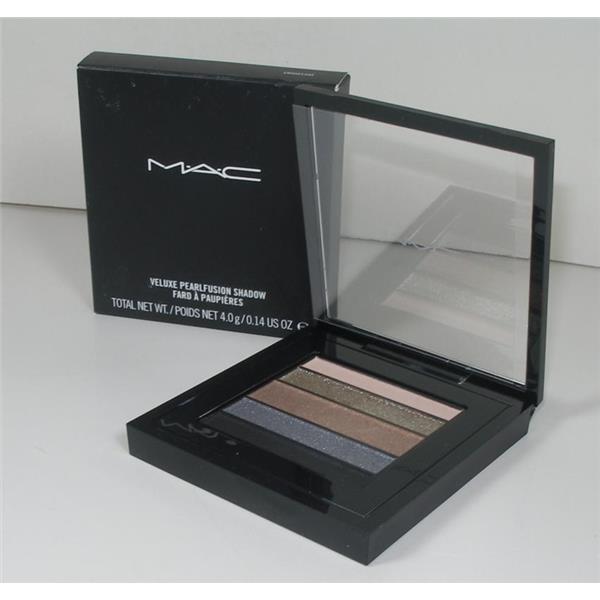 MAC Veluxe Pearlfusion Eye Shadow Palette in Smokeluxe. 5 perfectly coordinated shades in a mix of satin and shimmer finishes to create the perfect eye look for whatever occassion. These creamy textured powder shadows apply smoothly, are lightweight on the lids, easy to blend, and buildable. Smokeluxe shades are: frosty pink white, deep bronze, carbon black, deep grey and platinum.