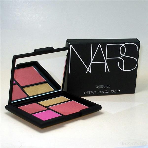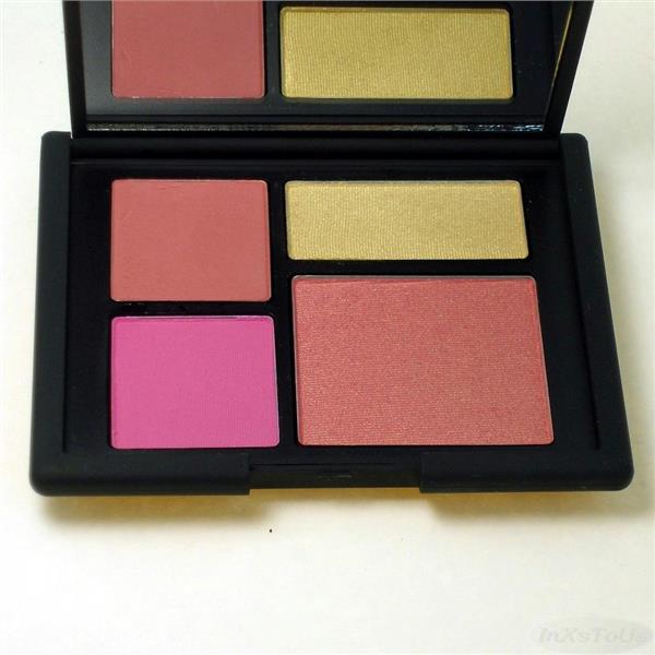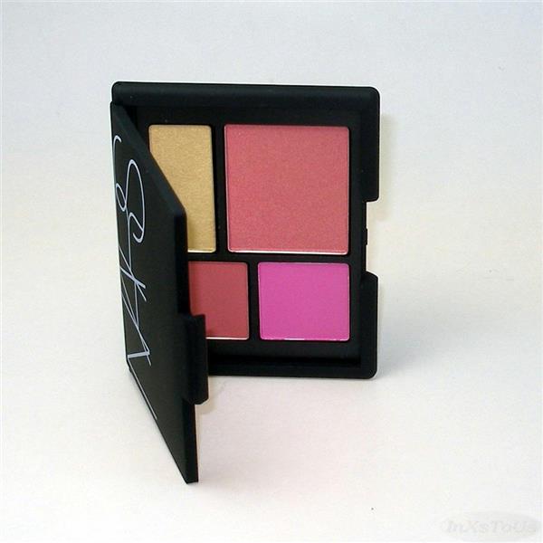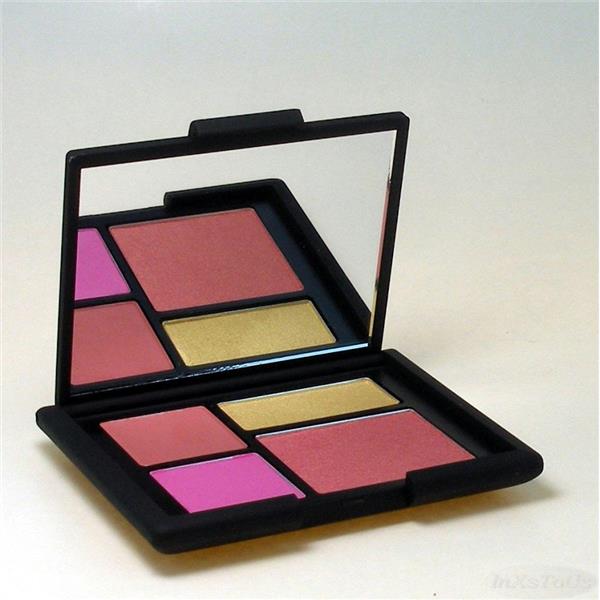 NARS Cheek Palette in Foreplay. This palette has four shades based on the bestselling Orgasm blush: Peach Matte Blush, Gold Highlighting Blush, Pink Matte Blush, and the larger Orgasm Blush (peachy pink with golden shimmer). Housed in a textured black compact with mirror.