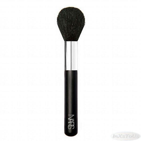 NARS Loose Powder Brush #1.This is a high-quality medium dense, soft rounded shape goat hair brush that works especially well for picking up, depositing and blending loose powder where you want it. This full size brush has a black handle that feels comfortable in the hand and silver ferrule. total length: 7 7/8"l, brush length 2". Retail was $70.00