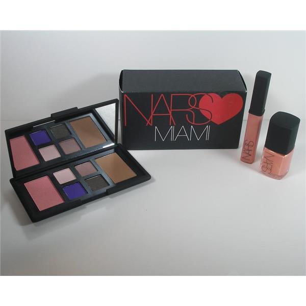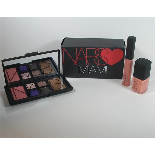 NARS Loves Miami Gift Set. Miami's favorite shades of eyeshadow, blush, bronzer, varnish, and gloss. The eyeshadows are highly pigmented and veratile so you can create many kinds of day to night looks. Retail $75.00