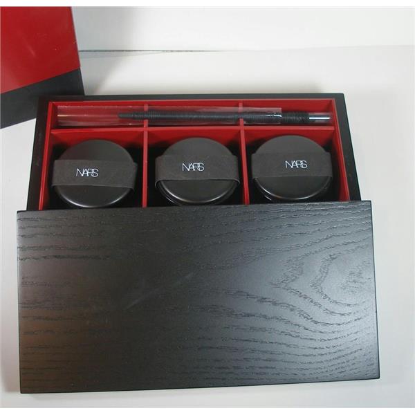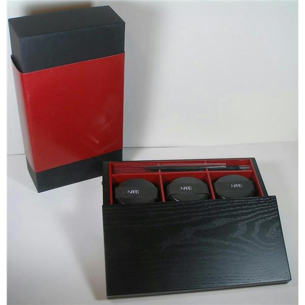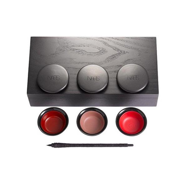 NARS Kudoki Kabuki Lip Color Gift Set. The Kudoki Kabuki Lip set contains 3 rich well pigmented creamy feeling lip colors; Botan (deep pink), Takebue (rose nude), and Ougi (brick red). bowls Bowls are 0.05 Oz (1.5g). These lip pots are housed in a wooden bento box and includes a hand-spun wisteria-wrapped kabuki lip brush