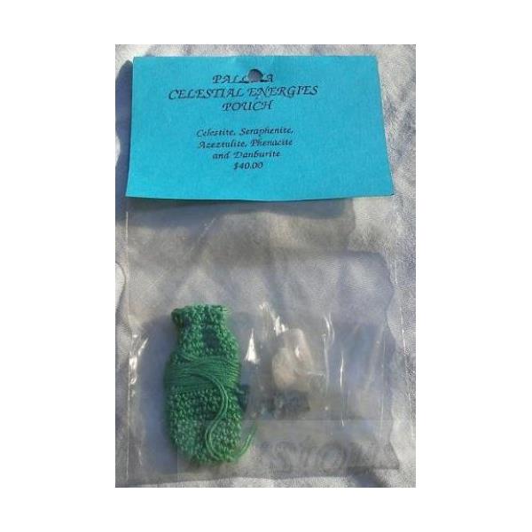 Paloma Celestial Energies Pouch. Paloma Pouches are hand crocheted cotton pouches which contain a special assortment of stones and are long enough to be worn around the neck.