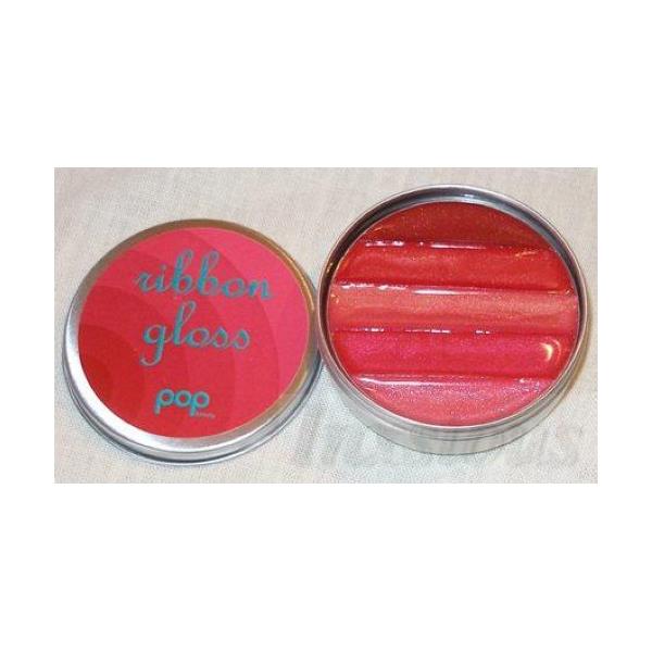 Pop Beauty Red Ribbon Lip Gloss Tin. Get a gorgeous, light on your lips, sheer tint of color with this feel good gloss-gel that has jojoba oil to help keep your lips soft and a hint of vanilla flavor. Each stripe has a different shade, with one being sure to be right for the moment. Red Ribbons has 5 beautiful shades: pink shimmer, raspberry red, peach glow, strawberry red, golden crimson red. Comes housed in a lovely 2-1/2" diameter lidded tin.