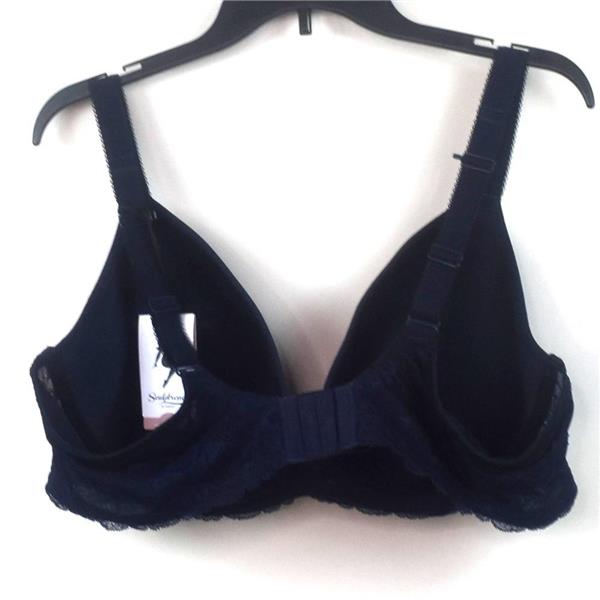 - Adjustable plush back stretch restricted straps with picot trim