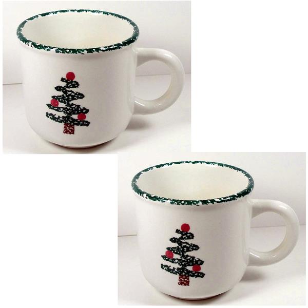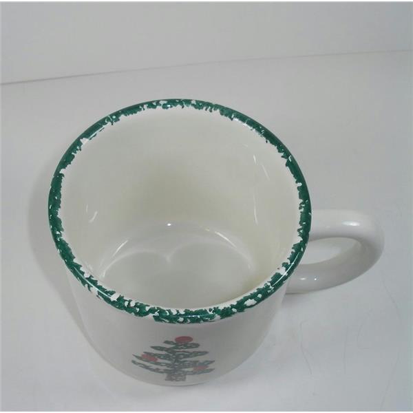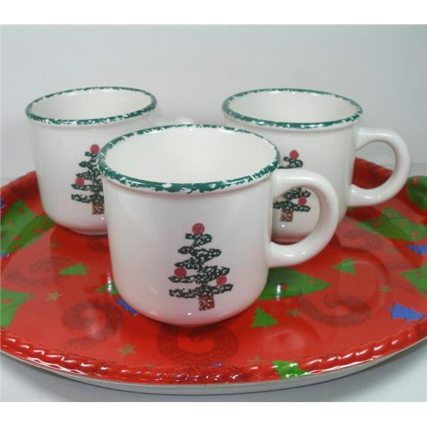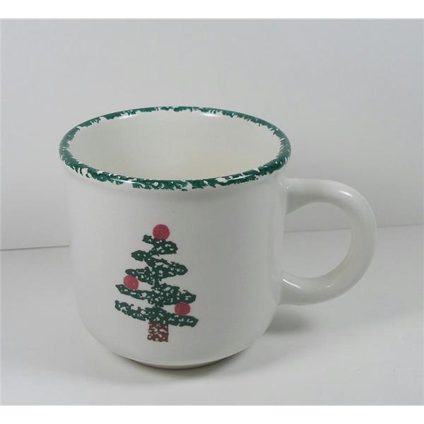 The FU05 pattern: This pattern features a green spongeware Christmas tree peppered with white snow and decorated with red bulb ornaments. The borders are wreath like green and plates have a simple red trim border to complete the look.