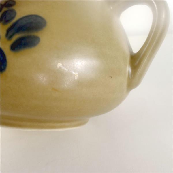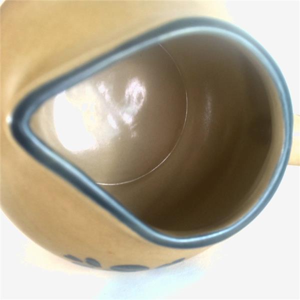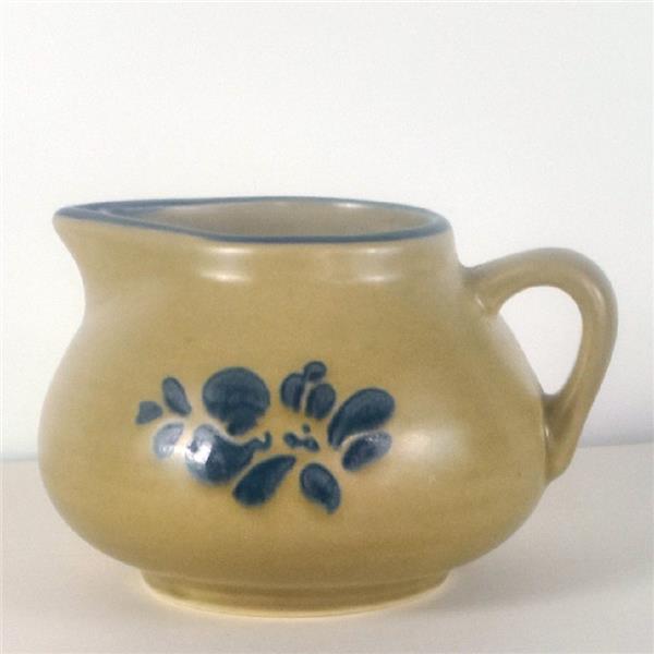 Pfalzgraff Folk Art Gravy Boat. This pattern was introduced by Pfaltzgraff in 1967 and features a blue floral pattern on a beige background. This Gravy Boat has a beige background and the folk art blue floral pattern on two outer sides with a pour rim that is accented with a blue border. Approximate Dimensions: 5-3/4" in Diameter (from pour to handle) and 4" in Height with a 3-1/4" Base. Backstamp is "Castle in circle, PFALTZGRAFF, Copyright, USA."