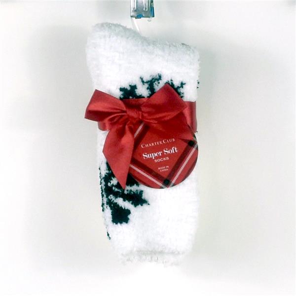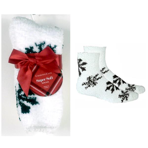 Womens Charter Club Super Soft Crew Socks in White, Shoe Size 6-10, Sock Size 9-11, New with tags, No retail packaging. Keep your feet warm and cozy on those chilly nights with these stylish Socks. These super soft socks help celebrate cool nights in style with its soft fuzzy chenille like feel. Pair with your favorite products for an ideal night in.