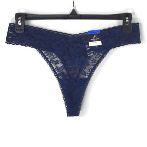 Inc International Concepts Lace Thong in Navy Sea, New with tags no retail packaging. Choose Size from the drop down box above. Be fun and Flirty with this cheeky thong. The sheer allover Lace body creates a sweet and comfortable style. This is a mesh lace style fabric in an all over floral print with shimmer accents, scallop waistband and picot trim on leg openings.