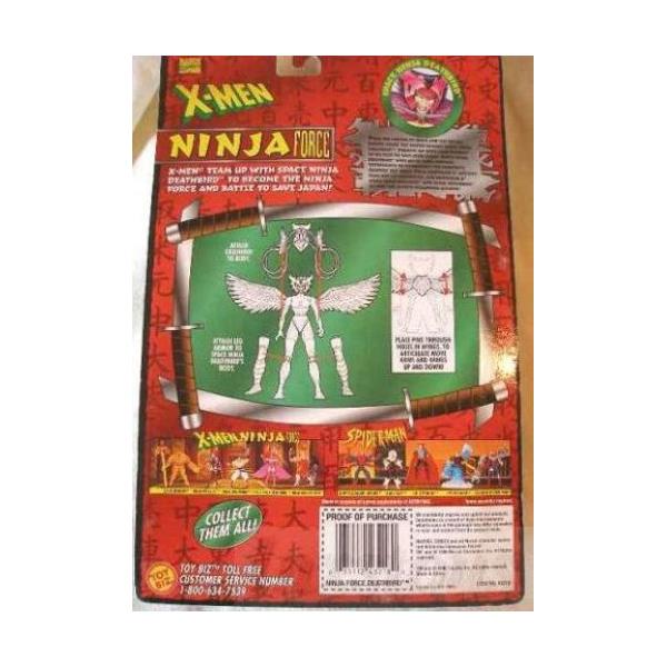 new in sealed box, X-Men Space Ninja Deathbird with Fold-out Ninja Wings. She is approximately 5" tall, outfitted in shades of purple, and comes with exoshield and leg armor.